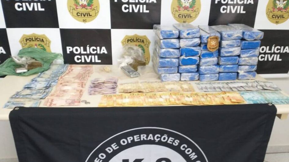 Além das prisões, a polícia apreendeu R$ 8 mil, 31 tijolos de maconha e pequenas porções de crack e cocaína.