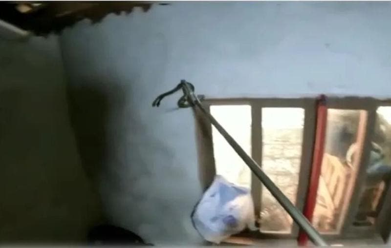 Uma jararaca foi capturada dentro de uma casa de Jaraguá do Sul, no Norte catarinense, nesta quinta-feira (8). Ela estava enrolada ao caibro, a estrutura usada para sustentar o telhado.
