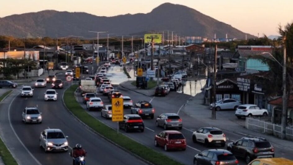 Na SC-405, o acúmulo de água está concentrado nos dois sentidos da rodovia, indo do Km 0,100 ao 0,800, com lentidão de veículos. Já na SC-401, a água está sobre a pista no sentido Centro/bairro, com filas que iniciam no Km 31 e seguem até o Km 32,200, no Trevo da Seta.