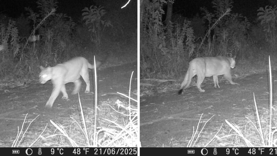 O predador de pelagem bege pode chegar a pesar 70 quilos quando está em fase adulta, sendo considerado o segundo maior felino do continente americano — atrás apenas da onça-pintada. O médico veterinário avisa que o flagrante do animal é um alerta para os moradores locais redobrarem a atenção, considerando especialmente as áreas de camping na região.