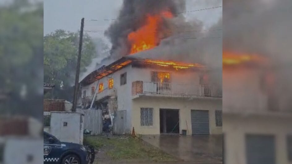 Um incêndio atingiu uma casa neste sábado (10) no bairro Iririú, em Joinville, no Norte de Santa Catarina. De acordo com os bombeiros, as chamas foram contidas por volta das 17h30 e não houve registro de vítimas.