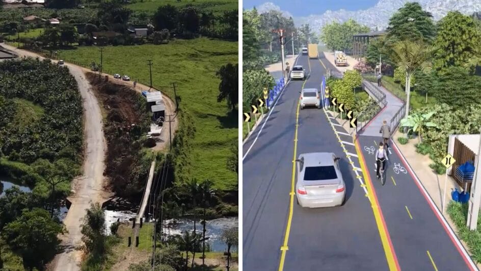 A obra integra um eixo de ligação entre os dois municípios e busca ampliar as condições de deslocamento no trecho, além de atender o transporte de moradores, trabalhadores e da produção local. A estrutura também inclui ciclovia ao longo de todo o percurso e ponte para garantir a continuidade da via.