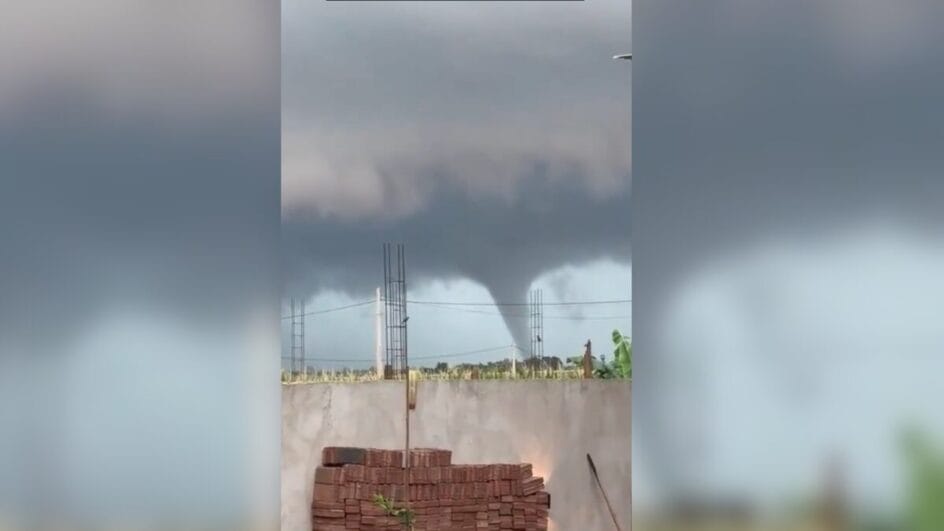 Um vídeo publicado nas redes sociais mostra a formação de um tornado no Paraguai, a cerca de 57 quilômetros de Foz do Iguaçu, no oeste do Paraná, no Brasil. Imagens feitas por moradores mostram uma nuvem em formato de funil entre as cidades de Santa Rita e Santa Rosa del Monday, acompanhada por rajadas intensas de vento. Com informações do g1.