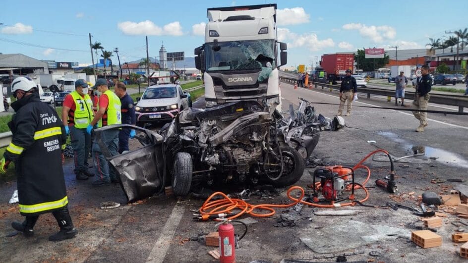 O caminhoneiro que causou o engavetamento teve lesões leves. O condutor da Fiorino com placas de Camboriú e o outro motorista não se feriram, segundo a PRF. O acidente foi no Km 115 da rodovia por volta das 8h30min, no sentido Sul. A Kombi pegou fogo e o incêndio foi combatido por populares.