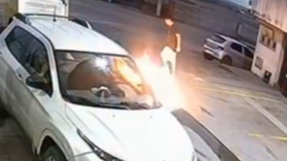 Câmeras de segurança flagraram o momento em que o autor iniciou a tentativa de incêndio. O homem foi controlado por populares, para evitar que as chamas se espalhassem. Durante a tentativa de imobilização, ele reagiu com chutes e socos e acabou ficando lesionado.