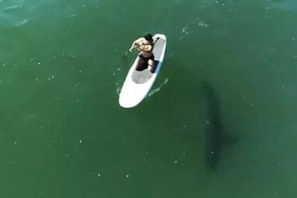 Carlos deixou um comentário no vídeo, celebrando: “Um dia incrível! Você conseguiu uma vista ótima de um jovem tubarão branco. Feliz por você! Algo que você jamais vai esquecer. Um tubarão muito calmo apenas curtindo Malibu.”