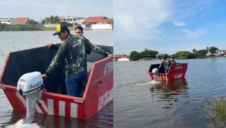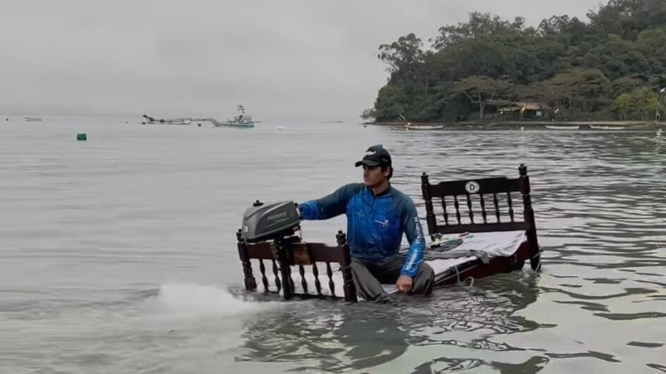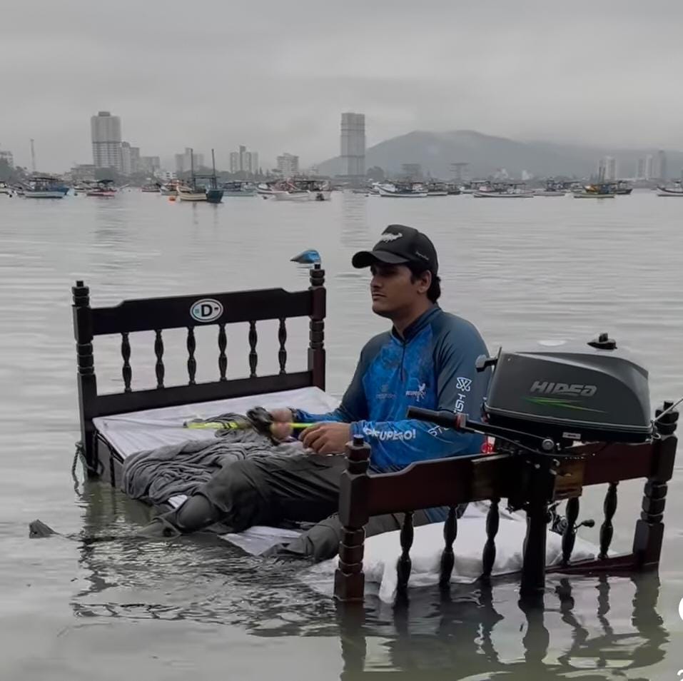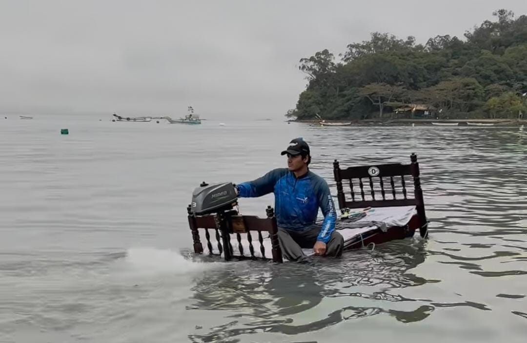 Depois do sucesso com a caçamba, Deigmar Paulo transformou uma cama em embarcação para pesca e fez graça em um vídeo gravado para a internet na última semana. Morador de Navegantes, o influenciador brincou ao escrever: “Quando ela fala: ‘se você sair dessa cama para pescar está tudo acabado’”.