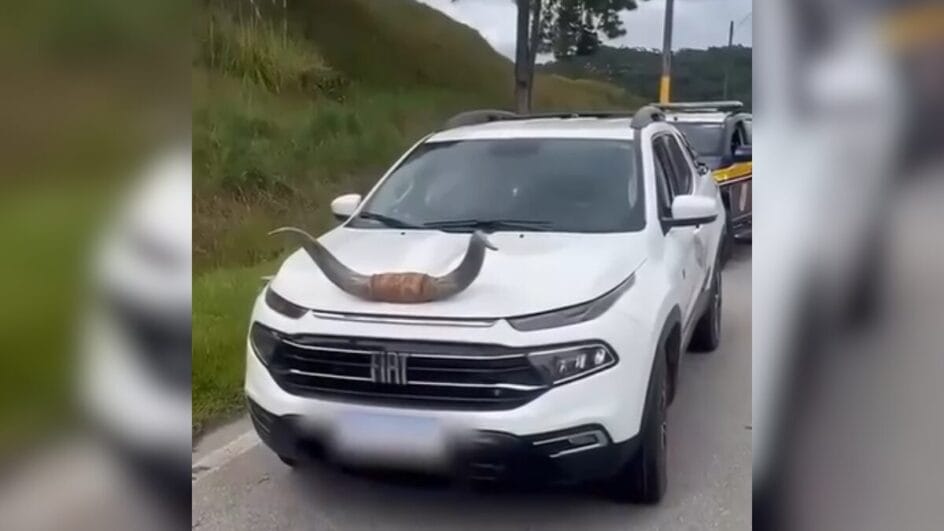 Uma picape foi flagrada com chifres de boi instalados na ponta do capô dianteiro durante uma fiscalização da Polícia Rodoviária Federal (PRF) na BR-282 em Rancho Queimado, na Grande Florianópolis. O flagrante ocorreu na última sexta-feira (30).