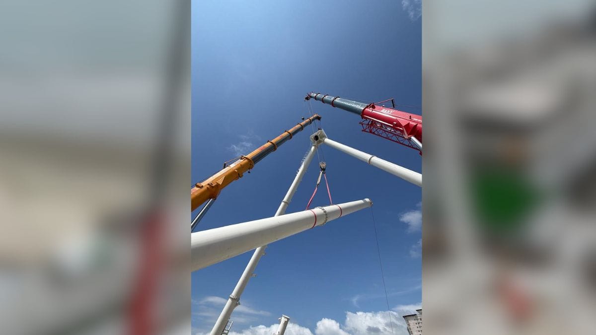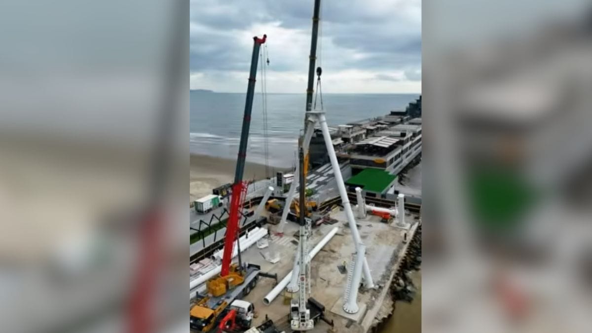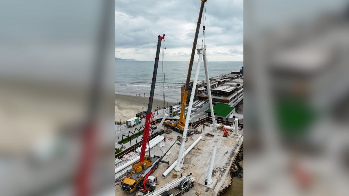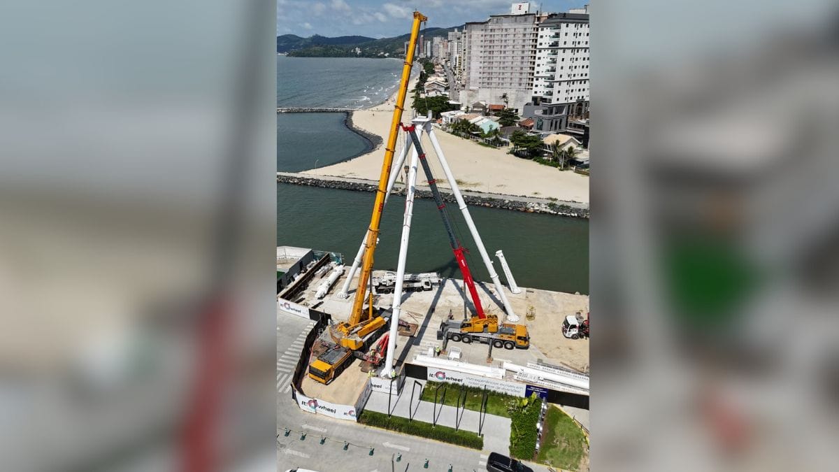 A montagem da nova roda-gigante de Itapema, a It! Wheel, avançou para a fixação dos cinco pés da estrutura. Iniciada no dia 9 deste mês, a etapa de montagem da estrutura mobilizou três guindastes e um caminhão-munck para o içamento das pernas e do eixo central que vai dar sustentação à roda-gigante.