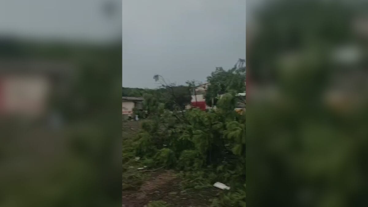 Vídeos gravados por moradores mostram o tamanho do rastro de destruição deixado pelos fortes ventos. Em um registro, uma das moradoras mostra como ficou a região em que a casa foi arrancada. Residências destelhadas, portões arrancados, postes tortos… Tudo isso com a força do vento. Em determinado momento, a mulher foca no local onde a casa estava.