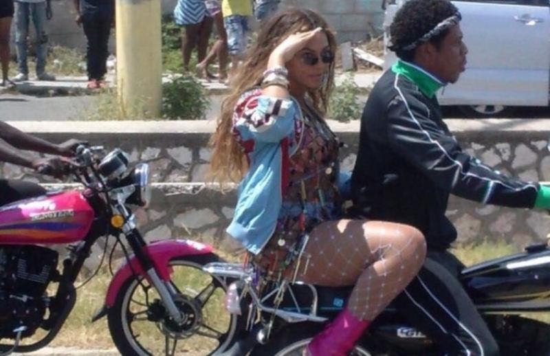 Beyoncé e Jay-Z foram flagrados por moradores de Kingston, na Jamaica, fazendo uma gravação nas ruas da capital do país caribenho junto com Melina Matsoukas, que já dirigiu vários clipes da cantora. Nas fotos, o casal aparece em cima de uma moto, e os brasileiros já notaram uma semelhança de figurino utilizado por Anitta no clipe de Vai Malandra.
