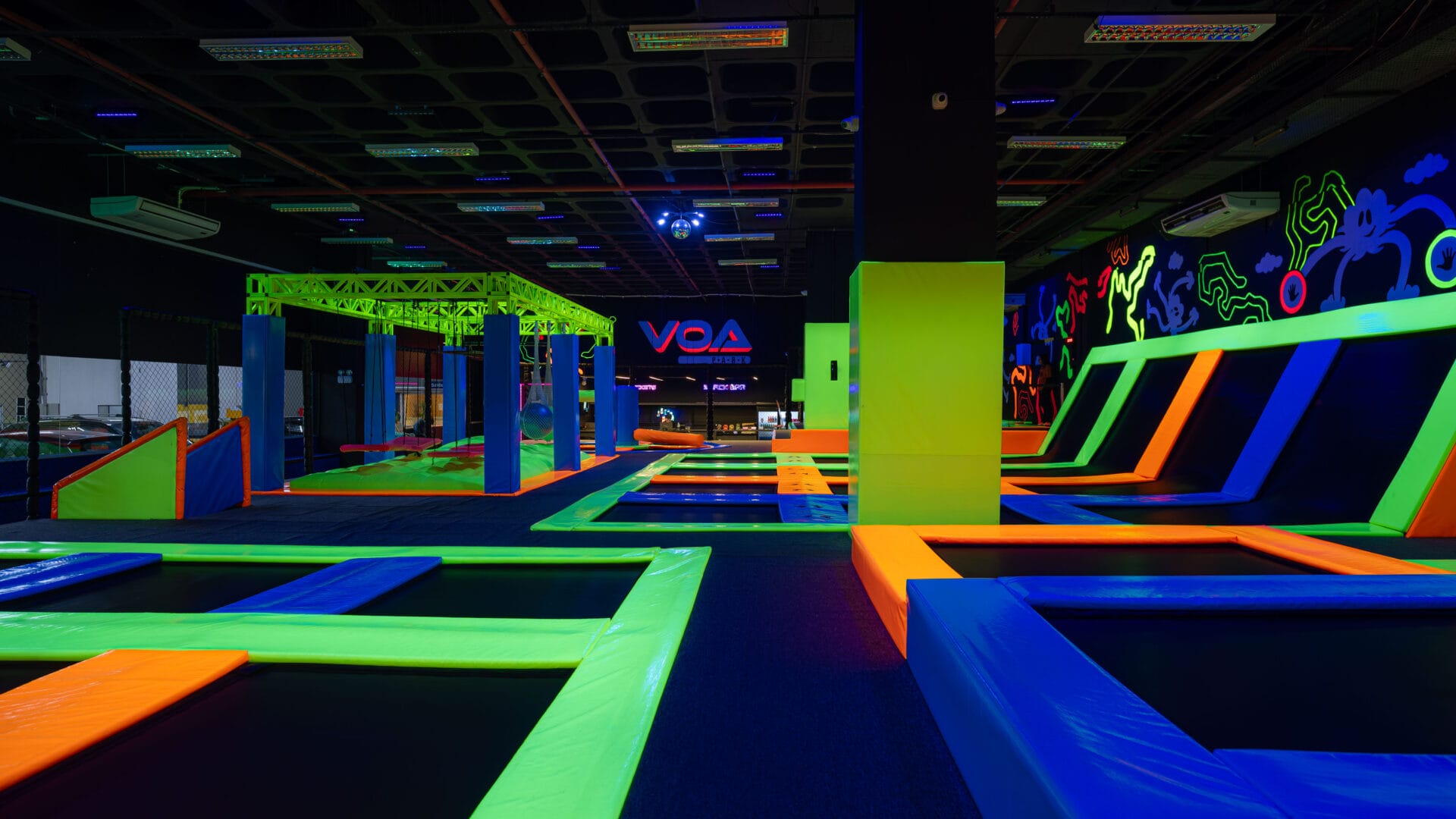 Um dos motivos que têm feito o VOA Park ganhar adeptos em todo o Estado é o modelo inovador, que ainda causa surpresas e curiosidade. Toda a estrutura do parque foi pensada para oferecer uma experiência ativa, em um ambiente que estimula o movimento e a convivência. Com cores, música e interações com a equipe que elevam o momento dentro das arenas a um novo patamar.