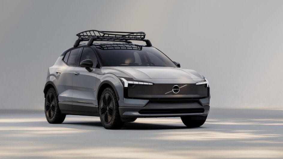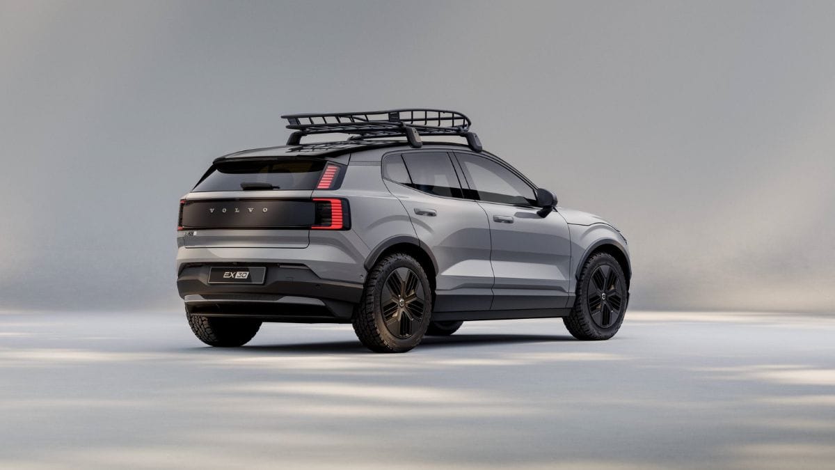 O Volvo EX30 Cross Country é a nova versão topo de linha do elétrico, que exibe um visual robusto com suspensão elevada em 19 mm e pneus mais largos e todo-terreno em rodas aro 19”.