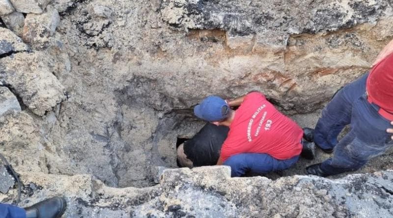 Ele disse às equipes de resgate que entrou no local por vontade própria e depois não conseguiu mais sair. O homem resgatado também relatou aos bombeiros não saber o motivo pelo qual foi parar no local.