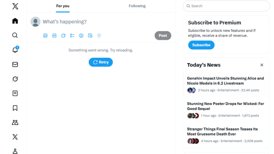 A rede social X, antigo Twitter, apresentou instabilidades nesta sexta-feira (21), segundo o DownDetector, que monitora problemas em serviços e aplicativos.