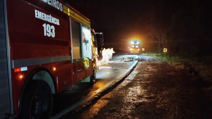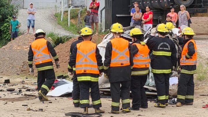 Acidente violento mata três na BR-470 em SC e deixa carro irreconhecível