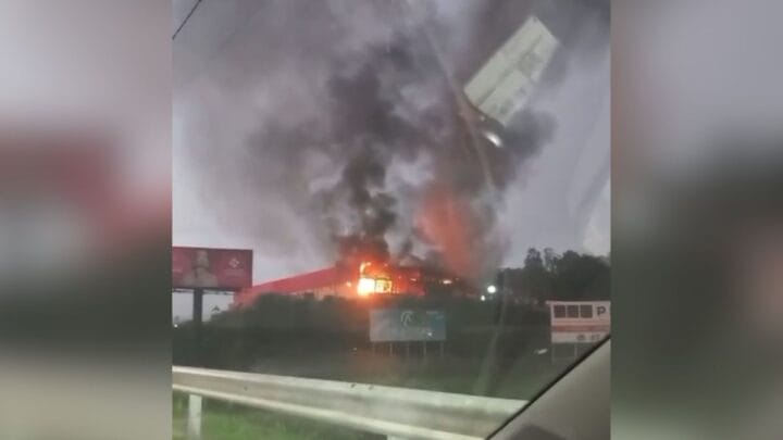 Incêndio em galpão às margens de rodovia mobiliza bombeiros de três cidades em SC
