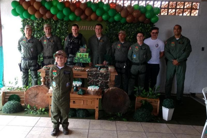 Menino recebe festa de aniversário com presença de policiais da 2ª Cia de Aviação de Joinville