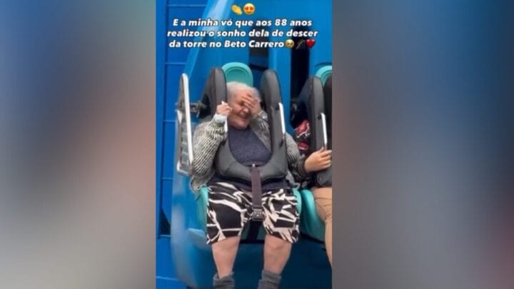 Vovó de 88 anos encara queda livre de 100 metros no Beto Carrero e surpreende: “Meu sonho”