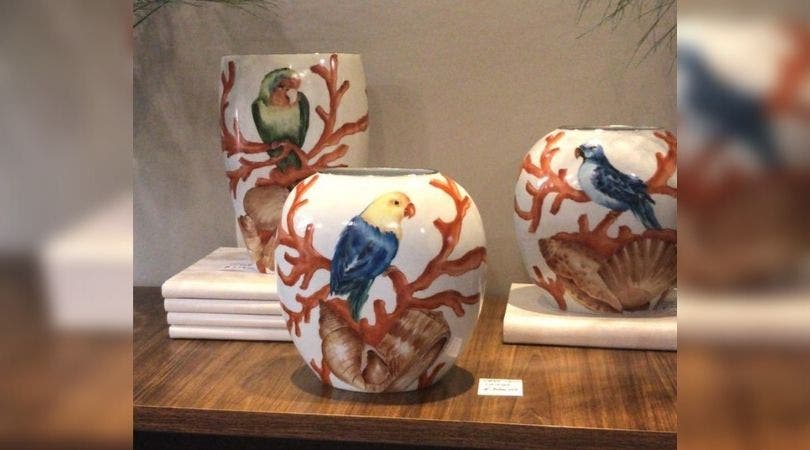 Artista de Blumenau expõe cerâmicas pintadas à mão na cidade