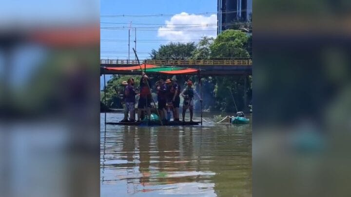 Amigos viralizam com “churrasco flutuante” em balsa que cruzou rio de Jaraguá do Sul