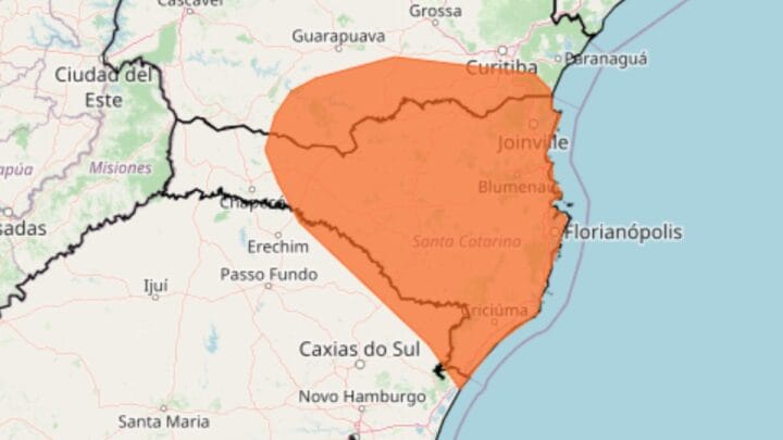 Defesa Civil de SC envia alerta de temporais para quatro regiões catarinenses pelas próximas horas