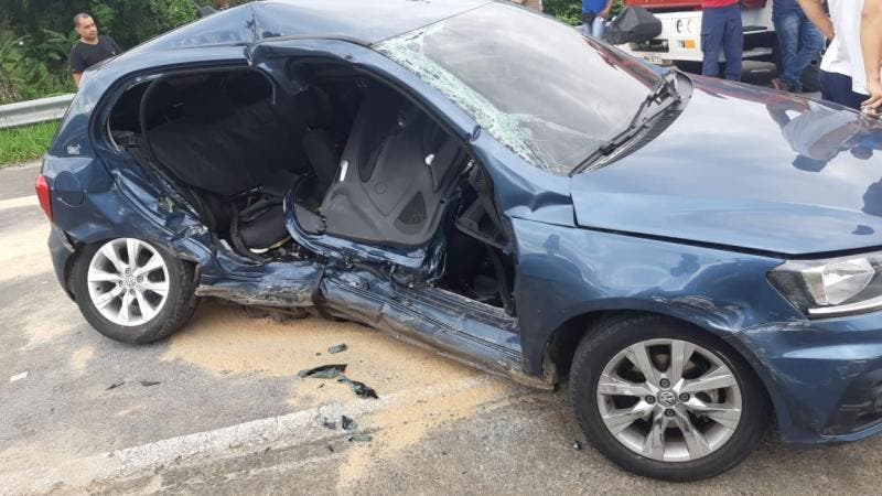 Carro bate em carreta na BR-282 em Rancho Queimado; motorista sofreu ferimentos leves
