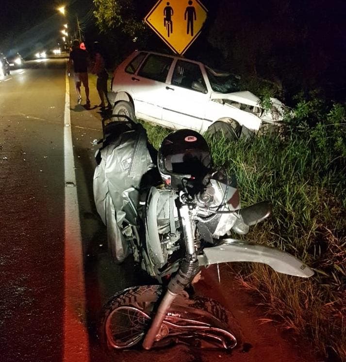 Homem fica gravemente ferido após colisão entre carro e moto em Florianópolis