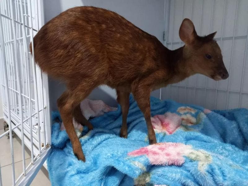 Veado ameaçado de extinção é resgatado em SC após ser atropelado