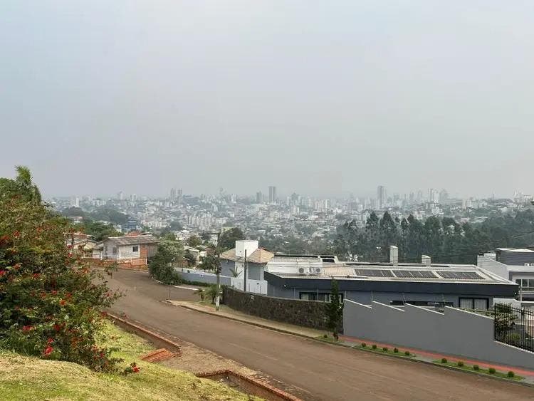 Fotos de antes e depois mostram Joinville coberta por fumaça de queimadas