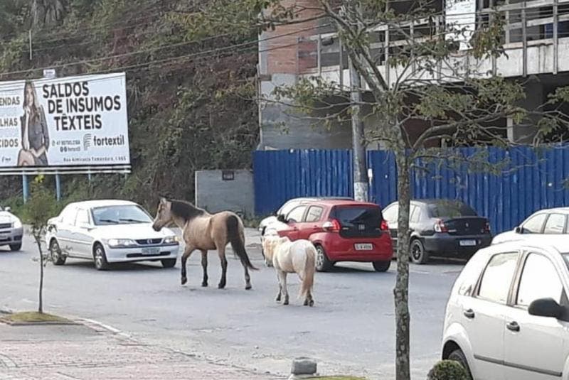 Cavalos escapam de terreno e ‘passeiam’ por rua de Blumenau
