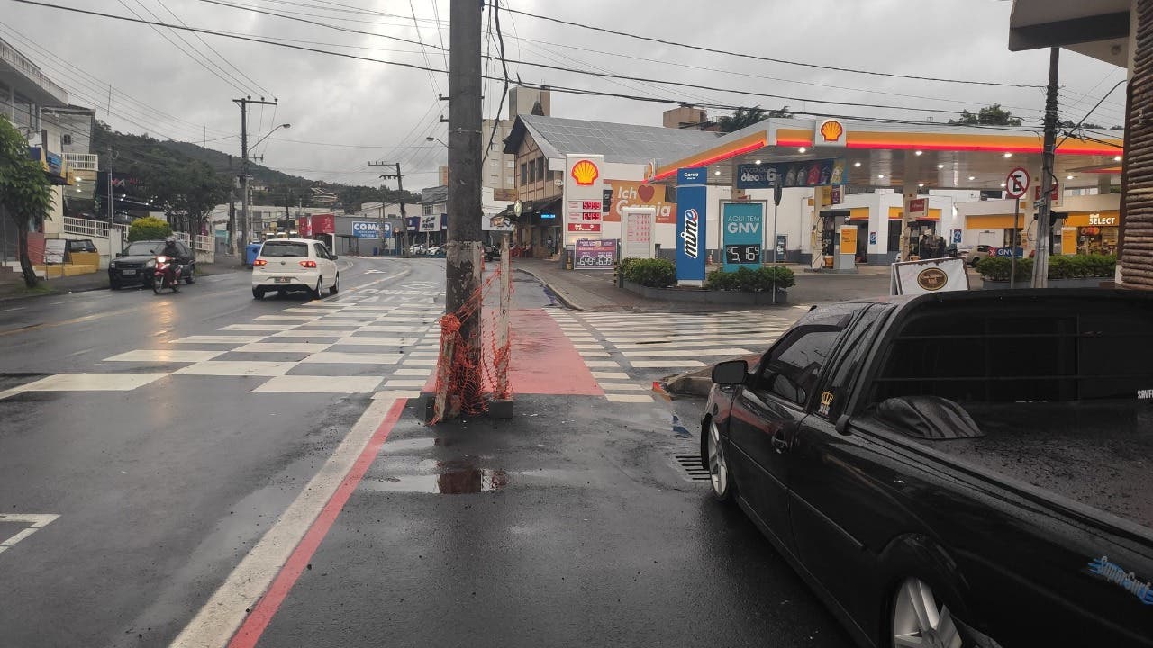 Postes em rua de Blumenau formam teste de baliza em pleno trânsito