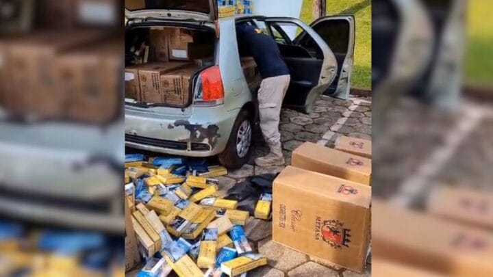 Vídeo mostra fuga perigosa de motorista com 12 mil maços de cigarro contrabandeados em SC