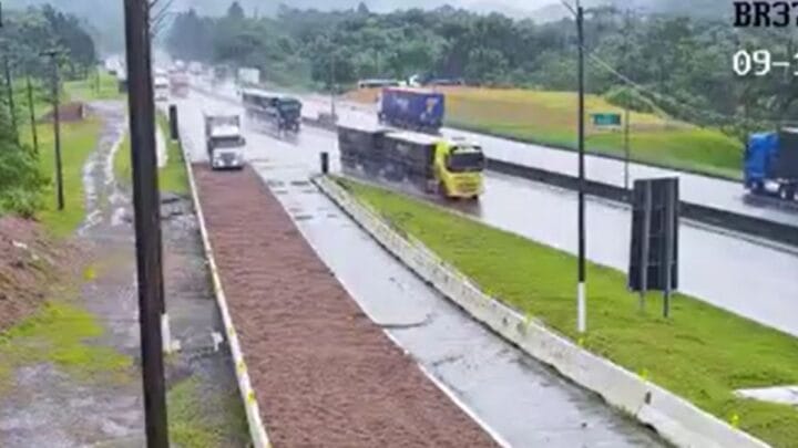 VÍDEO: Área de escape evita acidente com carreta em pista molhada da BR-376