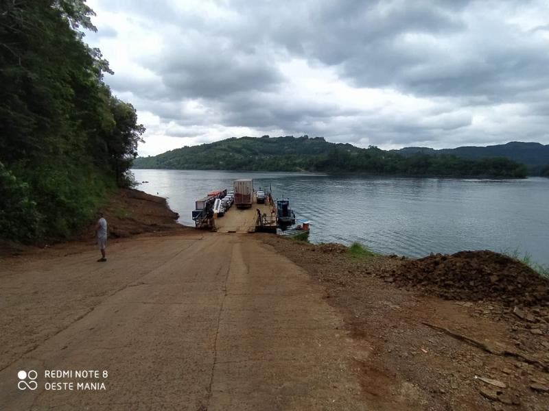Barca encalha em Itapiranga devido ao baixo nível do Rio Uruguai, no Oeste de SC