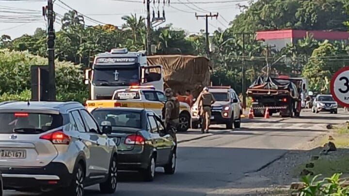 Motociclista morre ao ser esmagada por caminhão na SC-108 em Joinville