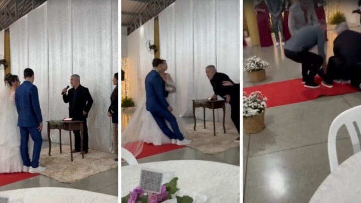 VÍDEO: Noivo de SC desmaia no altar e episódio viraliza na internet