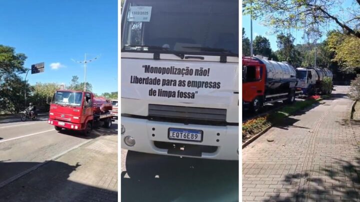 Empresários protestam em frente à prefeitura de Blumenau contra concessão do limpa fossa à BRK