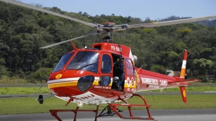 Helicóptero Arcanjo 03 dos bombeiros se prepara para voltar à base de Blumenau